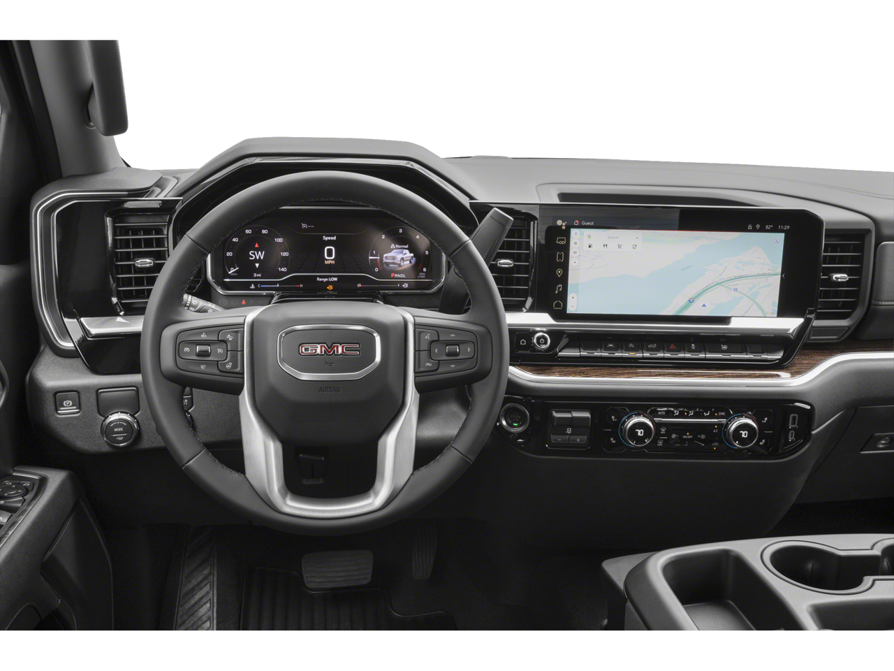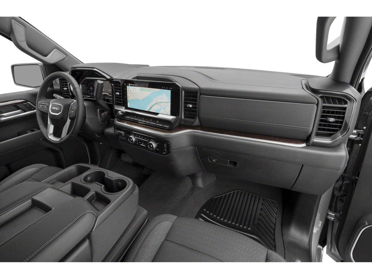 Elevation Premium Package: Leather-Appointed Seat Trim; Up-Level Rear Seat with Storage Package; All-Weather Floor Liner; Spray-On Pickup Bedliner with GMC Logo. Sierra Safety Plus Package: Rear Cross Traffic Braking; HD Surround Vision; Trailer Side Blind Zone Alert; Rear Pedestrian Detection; Ultrasonic Front and Rear Park Assist; Perimeter Lighting; Trailer Camera Provisions; High Gloss Black Mirror Caps. Preferred Equipment Group 3SB: HD Rear Vision Camera; LED Cargo Area Lighting; Remote Vehicle Starter System; Electric Rear-Window Defogger; Theft Deterrent System (unauthorized Entry); Body Color Header with Gloss Black Mesh Grille Bars; Cloth Rear Seat with Storage Package; GMC Pro Safety; Trailering Package; 120-Volt Interior Power Outlet; 2 Charge/data USB Ports; Steering Wheel Audio Controls; 2 type-C Charge-Only Rear USB Ports; Color-Keyed Carpeting Floor Covering; OnStar Services Capable; Power Front Windows with Passenger Express Down; Deep-Tinted Glass; 6-Speaker Audio System Feature; Power Rear Windows with Express Down; Integrated Trailer Brake Controller; SiriusXM with 360L Trial Subscription; Single Speed Transfer Case; Power Front Windows with Driver Express Up/down; Manual Tilt-Wheel and Telescoping Steering Column; Front Frame-Mounted Black Recovery Hooks; Keyless Open and Start; Wi-Fi Hotspot Capable; Push Button Start; Auto-Locking Rear Differential; Power Door Locks. Preferred Package: Premium Bose 7-Speaker Sound System; Power Sliding Rear Window with Rear Defogger; In-Vehicle Trailering System App; Rear Wheelhouse Liners; Universal Home Remote; Adaptive Cruise Control; Hitch View. 6" Rectangular Black Tubular Assist Steps. Front Bucket Seats. Spray-On Pickup Bedliner with GMC Logo. Onyx Black. All-Weather Floor Liner. **Equipment listed i